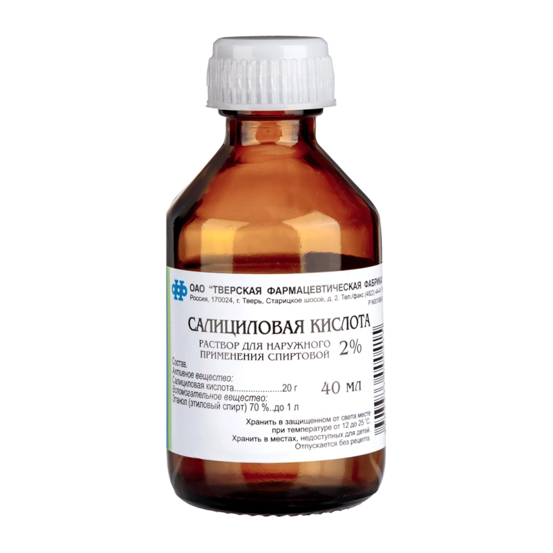 Салициловая кислота 2% раствор спиртовой для наружного применения 40 мл 1 шт Тверская фармацевтичекская фабрика
