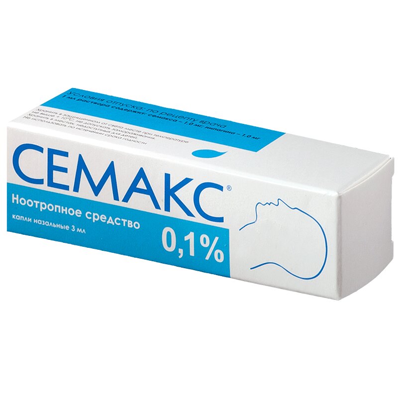 Всасывается со слизистой оболочки носовой полости, при этом усваивается до 60–70% в пересчете на активное вещество. Семакс капли назальные 0,1% быстро распределяется по всем органам и тканям, проникает через гематоэнцефалический барьер. При попадании в кровь Семакс капли назальные 0,1% подвергается быстрой биотрансформации и выведению из организма с мочой.