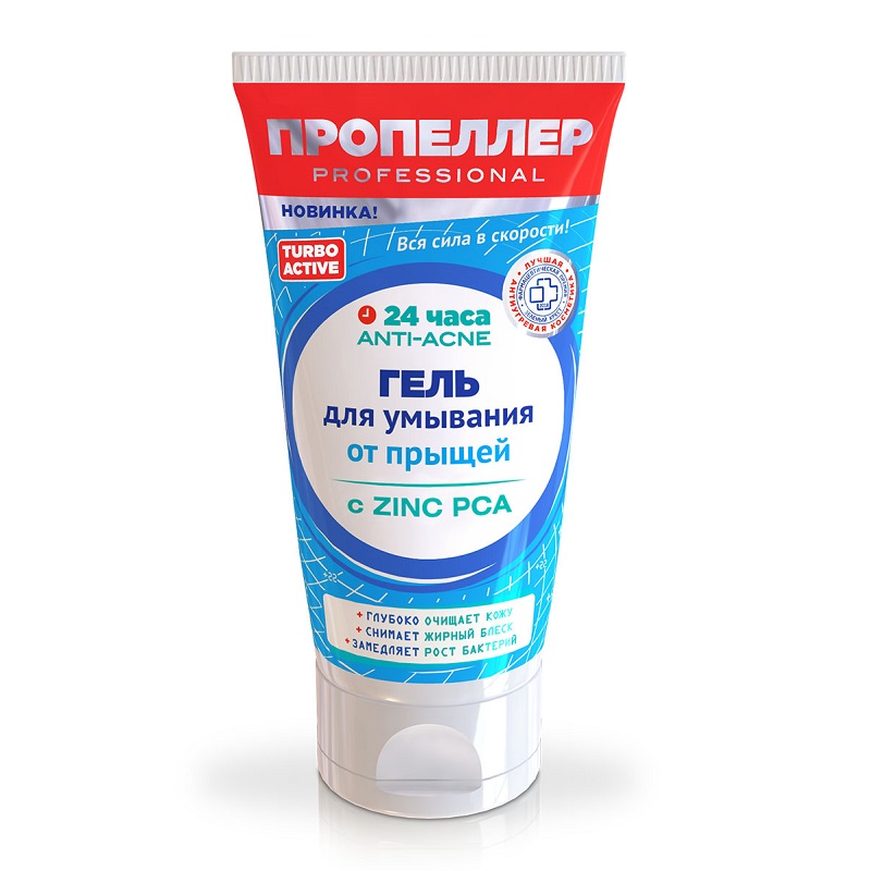 Пропеллер Turbo Active Гель для умывания от прыщей для глубокого очищения пор 150 мл
