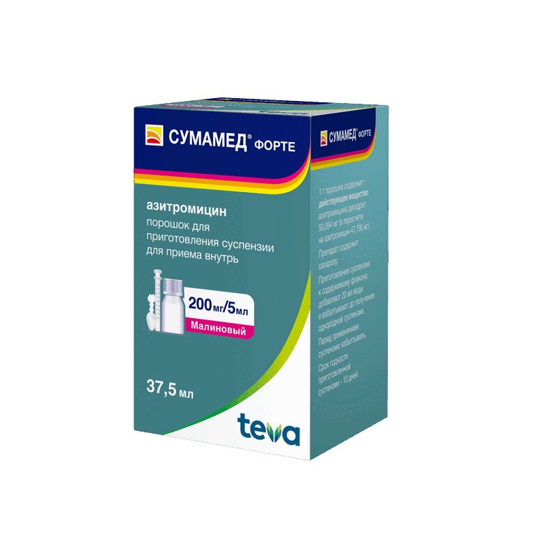Детям с массой тела до 10 кг следует назначать Сумамед® в форме порошка для приготовления суспензии для приема внутрь с концентрацией 100 мг/5 мл.