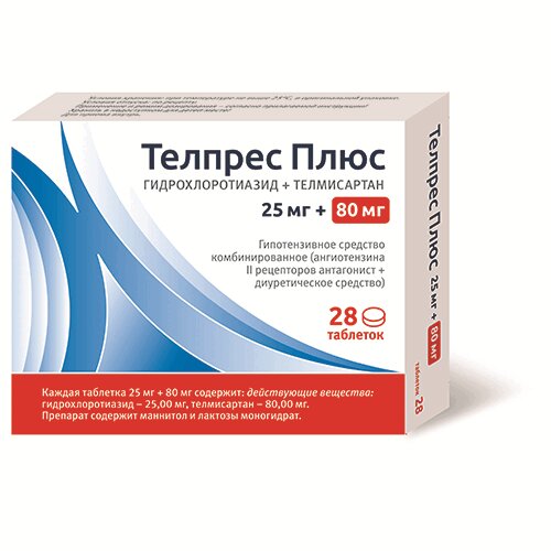 Телпрес Плюс 25 мг+80 мг таблетки 28 шт в аптеках Москвы
