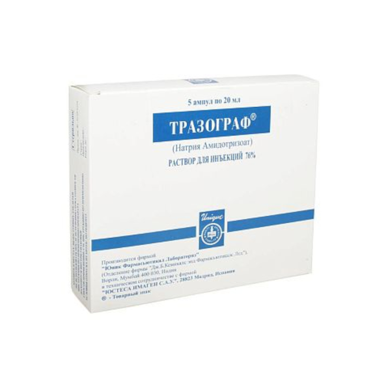 Тразограф® - ионное трийодированное рентгеноконтрастное средство. Повышает контрастность изображения за счет поглощения рентгеновских лучей входящим в состав препарата стабильно связанным йодом.