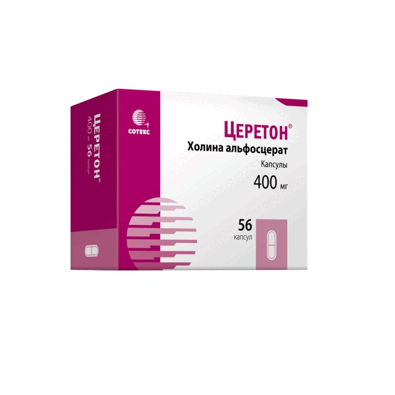 Церетон® – холина альфосцерат, который является холиномиметиком центрального действия с преимущественным влиянием на центральную нервную систему. В состав препарата входит 40,5 % холина, высвобождающегося из соединения в головном мозге; холин участвует в биосинтезе ацетилхолина (одного из основных медиаторов нервного возбуждения). Альфосцерат биотрансформируется до глицерофосфата, который является предшественником фосфолипидов. Ацетилхолин положительно воздействует на передачу нервного импульса, а глицерофосфат участвует в синтезе фосфатидилхолина (мембранного фосфолипида), в результате улучшается эластичность мембран и функция рецепторов.
