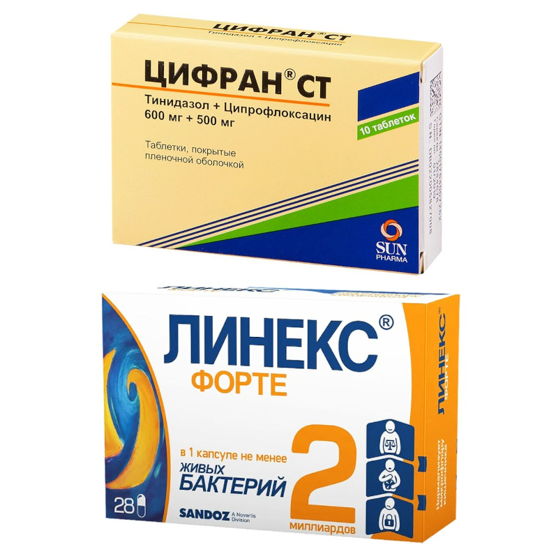 Как ципрофлоксацин, так и тинидазол хорошо абсорбируются в ЖКТ после перорального применения. Время достижения Cmax каждого компонента - 1-2 ч. Препарат быстро проникает в ткани организма, достигая там высоких концентраций. Обнаруживается в высоких концентрациях в слюне, секрете носовой полости и бронхов, сперме, лимфе, перитонеальной жидкости, желчи и секрете предстательной железы.