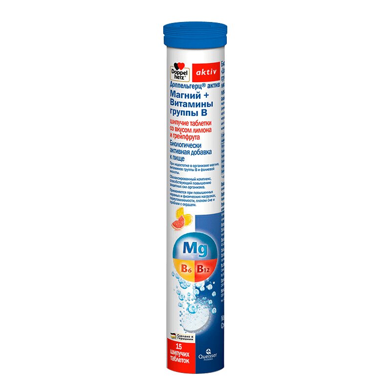 Доппельгерц Актив Магний+Витамины группы B таблетки шипучие Грейпфрут-Лимон 15 шт