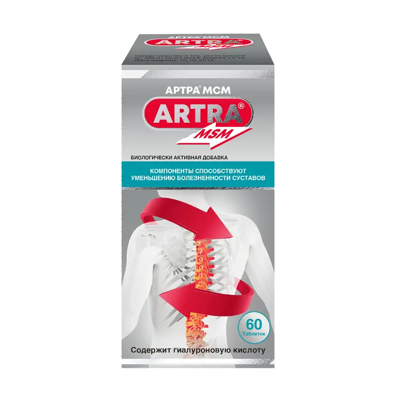 Таблетки, покрытые пленочной оболочкой от белого до белого с желтоватым оттенком цвета, двояковыпуклые, овальной формы, с гравировкой "ARTRA" с одной стороны, с характерным запахом.
