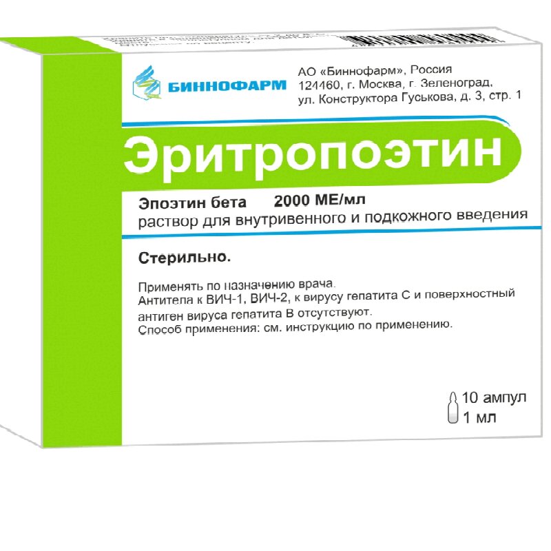 Увеличивает число эритроцитов и ретикулоцитов, содержание гемоглобина, активирует синтез гема. Нормализует сниженный гематокрит: его повышение начинается через 4 нед регулярного лечения.