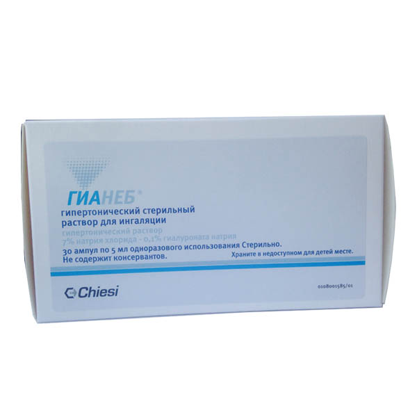 Ингаляции раствора Гианеб ускоряют отхождение вязкого секрета (мокроты) в дыхательных путях благодаря осмотическому механизму. Высокая концентрация соли притягивает воду и способствует регидратации бронхиальной слизи.