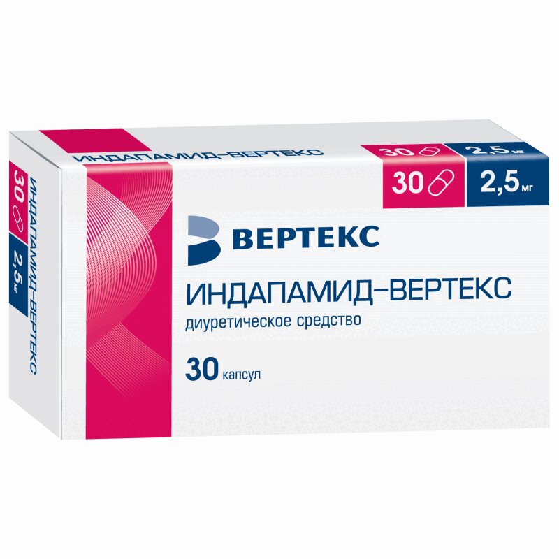 Индапамид-ВЕРТЕКС капсулы упаковка контурная 2,5 мг 30 шт