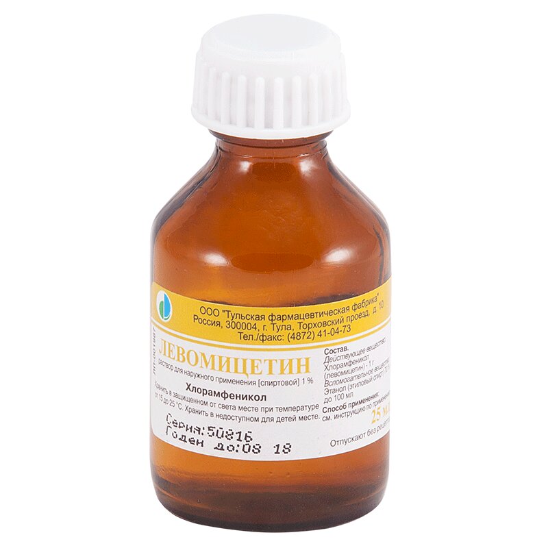Раствор для наружного применения спиртовой прозрачный, бесцветный или с желтоватым оттенком, с характерным запахом спирта. 100 мл хлорамфеникол 5 г Вспомогательные вещества: этанол 70% до 100 мл. 25 мл - флаконы оранжевого стекла (1) - пачки картонные.40 мл - флаконы оранжевого стекла (1) - пачки картонные.25 мл - флаконы из полиэтилентерефталата (1) - пачки картонные.40 мл - флаконы из полиэтилентерефталата (1) - пачки картонные.25 мл - флаконы оранжевого стекла - упаковки групповые.40 мл - флаконы оранжевого стекла - упаковки групповые.25 мл - флаконы из полиэтилентерефталата - упаковки групповые.40 мл - флаконы из полиэтилентерефталата - упаковки групповые.