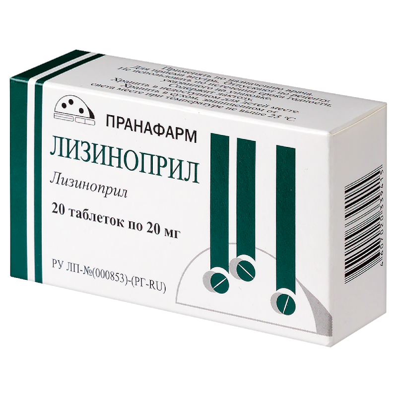 Лизиноприл 20 мг таблетки 20 шт Пранафарм
