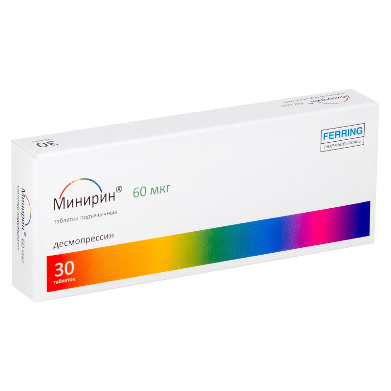 Структурный аналог естественного пептидного гормона гипоталамуса аргинин-вазопрессина, полученный в результате изменений в строении молекулы вазопрессина. Различие состоит в дезаминировании цистеина (в 1-й позиции) и замещении L-аргинина (в 8-й позиции) D-аргинином. Это ведет к существенной пролонгации антидиуретического действия и менее выраженному действию на гладкую мускулатуру сосудов и внутренних органов по сравнению с нативным аргинин-вазопрессином. Десмопрессин увеличивает проницаемость эпителия дистальных отделов извитых канальцев и повышает реабсорбцию воды, что приводит к уменьшению объема выделяемой мочи, повышению осмолярности мочи с одновременным снижением осмолярности плазмы крови, снижению частоты мочеиспусканий и уменьшению ноктурии (ночной полиурии). Антидиуретическое действие при приеме внутрь в дозе 0.1 мг сохраняется до 8 часов.
