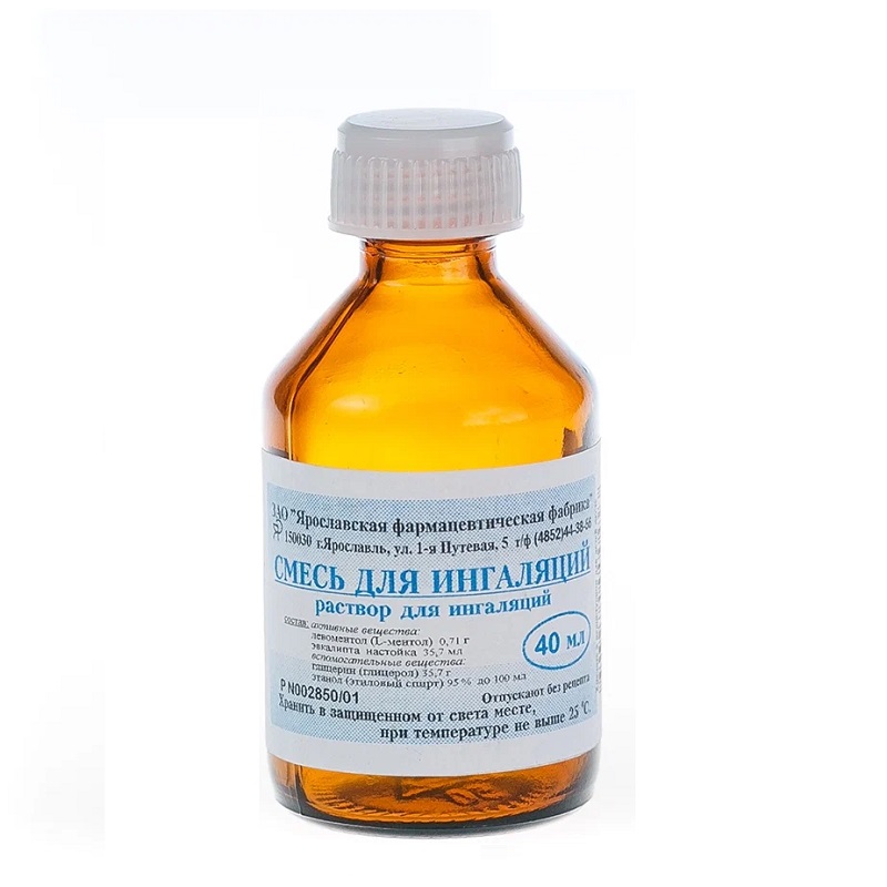 Раствор для ингаляций 100 мл: левоментол 710 мг, настойка листьев эвкалипта 35.7 мл.