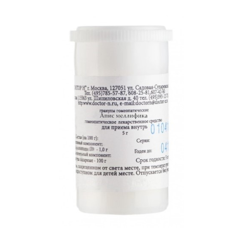 Действие Апис меллифика быстрое, но краткосрочное. Все разведения являются активными, но предпочтительно не использовать Апис меллифика в разведениях ниже С9 из-за присутствия в материнской настойке фосфолипазы А2 и мелитина, имеющих сильное иммуногенное действие.