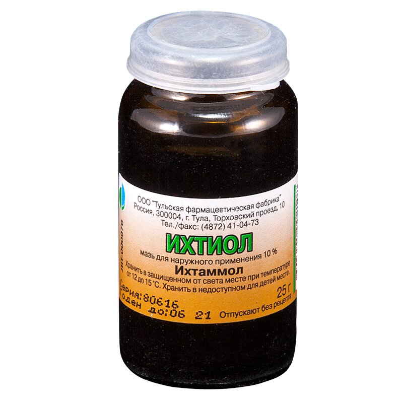 Не совместим с растворами солей йода, алкалоидами, солями тяжелых металлов, оксидом цинка. Диметилсульфоксид, спирт этиловый и глицерол при одновременной аппликации с мазью ихтиоловой усиливают системную абсорбцию ихтаммола и увеличивают глубину его проникновения в мягкие ткани.
