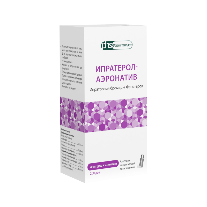 При совместном применении ипратропия бромида и фенотерола бронхорасширяющий эффект достигается путем воздействия на различные фармакологические мишени. Указанные вещества дополняют друг друга, в результате усиливается спазмолитический эффект на мышцы бронхов и обеспечивается большая широта терапевтического действия при бронхо-легочных заболеваниях, сопровождающихся обструкцией дыхательных путей. Взаимодополняющее действие таково, что для достижения желаемого эффекта требуется более низкая доза бета-адренергического компонента, что позволяет индивидуально подобрать эффективную дозу при практически полном отсутствии побочных эффектов.
