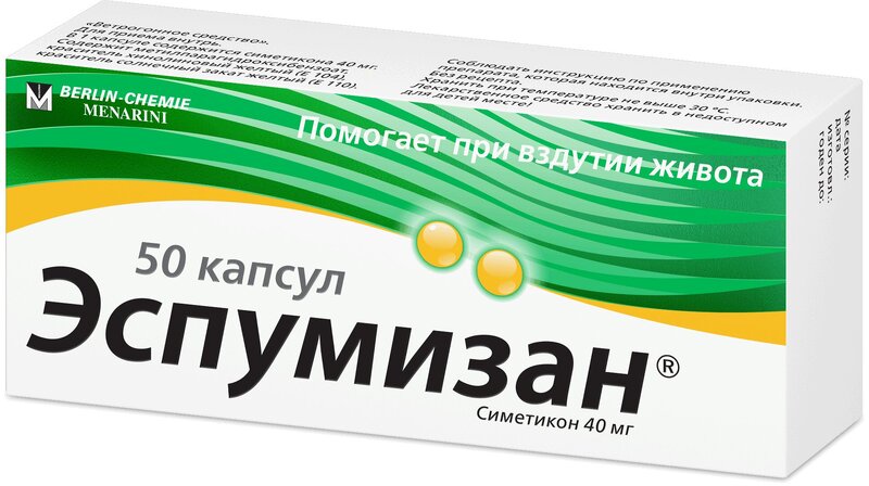 Симетикон - гидрофобное полимерное вещество с низким поверхностным натяжением, снижающее газообразование в кишечнике и покрывающее защитной пленкой стенки ЖКТ.