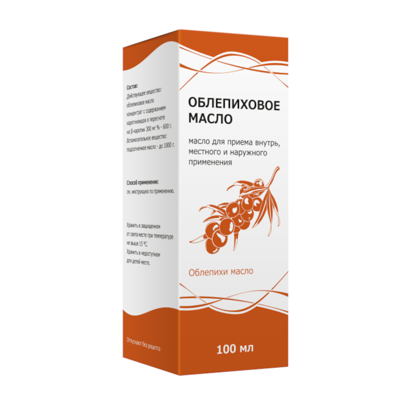 * масло облепиховое (концентрат масла облепихового с содержанием каротиноидов в пересчете на β-каротин 300 мг% - 600 г).