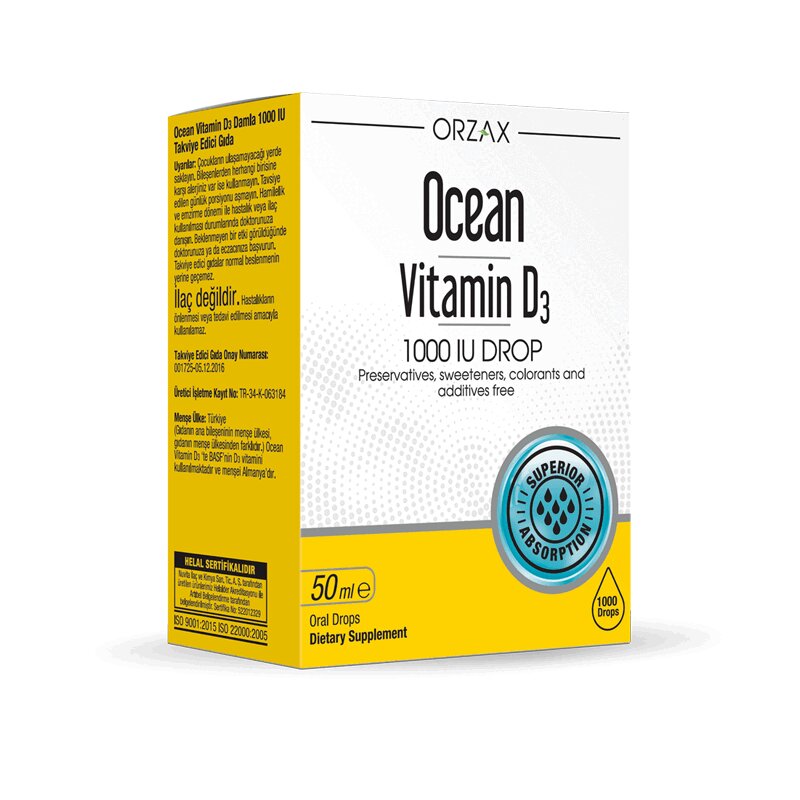 Ocean Vitamin D3 1000 ME содержит витамин D3 и чистое оливковое масло. Витамин D3 необходим для поддержания здоровья опорно-двигательного аппарата. Холекальциферол принимает непосредственное участие в усвоении кальция и фосфора - важнейших для костной ткани макроэлементов. От уровня витамина D3 в крови также зависит состояние кожи, волос, ногтей и зубов. Холекальциферол регулирует обменные процессы в клетках, укрепляет иммунитет. Полезные свойства Ocean Vitamin D3 1000 ME: • Укрепляет кости и зубы • Помогает поддерживать оптимальную работу мышц • Поддерживает красоту кожи, волос, ногтей • Поддерживает работу иммунной системы Показания: рекомендуется в качестве дополнительного источника витамина D3. Продолжительность приема: 1 месяц. При необходимости прием можно повторить. Противопоказания: индивидуальная непереносимость компонентов, беременность, кормление грудью. Перед применением рекомендуется проконсультироваться с врачом. Особые указания: биологически активная добавка (БАД) к пище. Не является лекарственным средством. Условия хранения: в сухом, защищенном от попадания прямых солнечных лучей, недоступном для детей месте при температуре не выше 25°С. После вскрытия флакон с дозатором-капельницей хранить не более 90 суток при температуре от 2°С до 6°С.