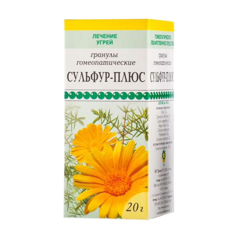 Вспомогательные вещества: гранулы сахарные 100 г.
