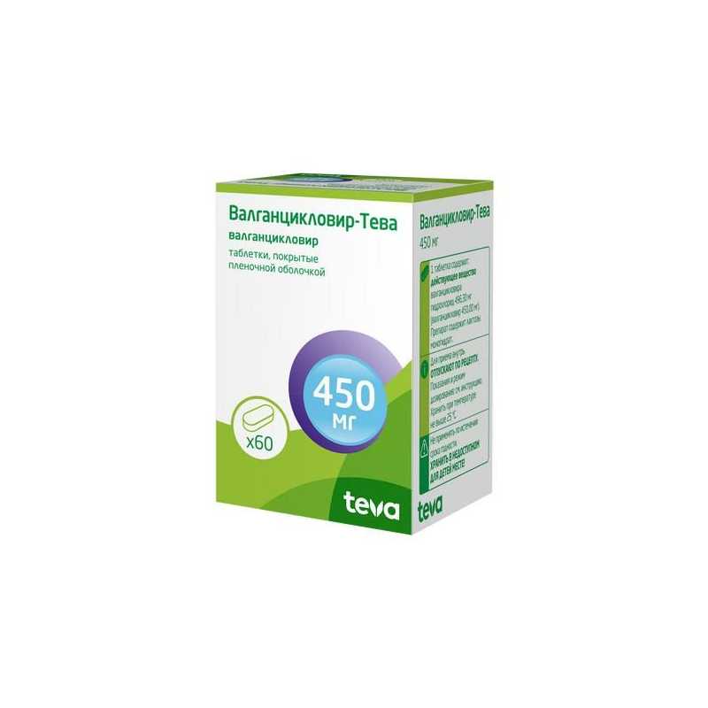 Во избежание передозировки необходимо строгого соблюдать рекомендации по режиму дозирования. Стандартный режим дозирования Препарат Валганцикловир-Тева следует принимать внутрь во время еды (см. подразделы «Всасывание» и «Фармакокинетика у особых групп пациентов» раздела «Фармакологические свойства»). Валганцикловир быстро и в значительной степени метаболизируется с образованием ганцикловира. Биодоступность ганцикловира в случае приема таблеток препарата Валганцикловир-Тева в 10 раз выше, чем в случае перорального приема ганцикловира (см. разделы «Особые указания» и «Передозировка»). Необходимо строго придерживаться рекомендаций по дозированию, указанных ниже. Терапия ЦМВ-ретинита Взрослые Индукционная терапия ЦМВ-ретинита У пациентов с активным ЦМВ-ретинитом рекомендованная доза препарата Валганцикловир-Тева составляет 900 мг (2 таблетки по 450 мг) 2 раза в сутки в течение 21 дня. Длительная индукционная терапия повышает риск миелотоксичности (см. раздел «Особые указания»). Поддерживающая терапия ЦМВ-ретинита После проведения курса индукционной терапии или у пациентов с неактивным ЦМВ-ретинитом рекомендованная доза составляет 900 мг (2 таблетки по 450 мг) 1 раз в сутки. Если течение ретинита ухудшается, курс индукционной терапии можно повторить (см. подраздел «Индукционная терапия ЦМВ-ретинита» раздела «Способ применения и дозы»). Длительность поддерживающей терапии должна определяться индивидуально. Профилактика ЦМВ-инфекции после трансплантации солидных органов Взрослые Пациентам, перенесшим трансплантацию почки, необходимо начать терапию препаратом Валганцикловир-Тева в течение первых 10 дней после трансплантации в дозе 900 мг (2 таблетки по 450 мг) 1 раз в сутки и продолжать терапию до 200‑го дня посттрансплантационного периода. Пациентам, перенесшим трансплантацию других солидных органов, необходимо начать терапию препаратом Валганцикловир-Тева в течение первых 10 дней после трансплантации в дозе 900 мг (2 таблетки по 450 мг) 1 раз в сутки и продолжать терапию до 100‑го дня посттрансплантационного периода. Особые указания по дозированию Пациенты детского возраста Терапия ЦМВ-ретинита Противопоказано применять таблетки препарата Валганцикловир-Тева у детей до 18 лет с целью терапии ЦМВ-ретинита, так как эффективность и безопасность применения препарата Валганцикловир-Тева у данной возрастной группы по данному показанию не установлена. Профилактика ЦМВ-инфекции после трансплантации солидных органов Режим дозирования у детей в возрасте с 16 до 18 лет не отличается от режима дозирования у взрослых (см. подраздел «Профилактика ЦМВ-инфекции после трансплантации солидных органов» раздела «Способ применения и дозы»). Таблетки препарата Валганцикловир-Тева противопоказано применять у детей и подростков до 16 лет с целью профилактики ЦМВ-инфекции после трансплантации солидных органов, так как эффективность и безопасность применения препарата Валганцикловир-Тева у данной возрастной группы не установлена. Пациенты пожилого возраста Эффективность и безопасность в данной популяции пациентов не установлены. Клинические исследования у пациентов в возрасте >65 лет не проводились. Поскольку почечный клиренс с возрастом снижается, пациентам пожилого возраста препарат Валганцикловир-Тева следует назначать строго с уче