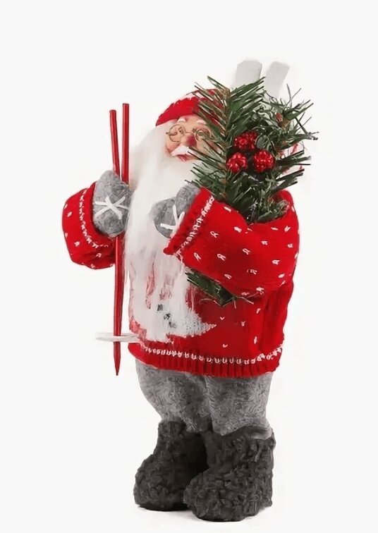 MaxiToys Дед Мороз в Свитере со Снежинкой и Лыжами 32 см